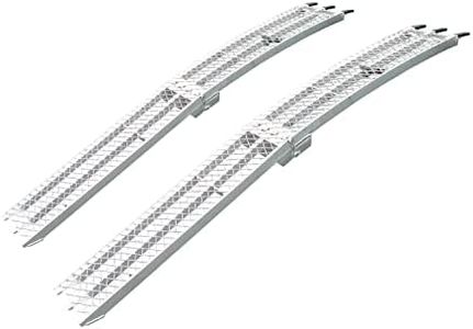 Made from aluminum, they strike a good balance between strength and lighter weight compared to steel ramps, though they still weigh 60 pounds each, which might be a bit heavy for some users to carry frequently. The serrated cross rungs enhance traction, which is great for grip even on slippery or uneven surfaces, helping prevent accidents during loading. However, the ramps do not fold, so storing and transporting them requires adequate space.